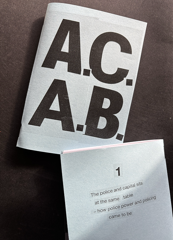 Polis och militär göder och föder brott, odlar rasistiska och misogyna kulturer och bidrar till mer brott än vad vi hade haft i en demilitariserad värld bortom kapitalismen. Samhället formar människan. Våldsamma ideologier skapar våldsamma individer. Det handlar detta zine om.